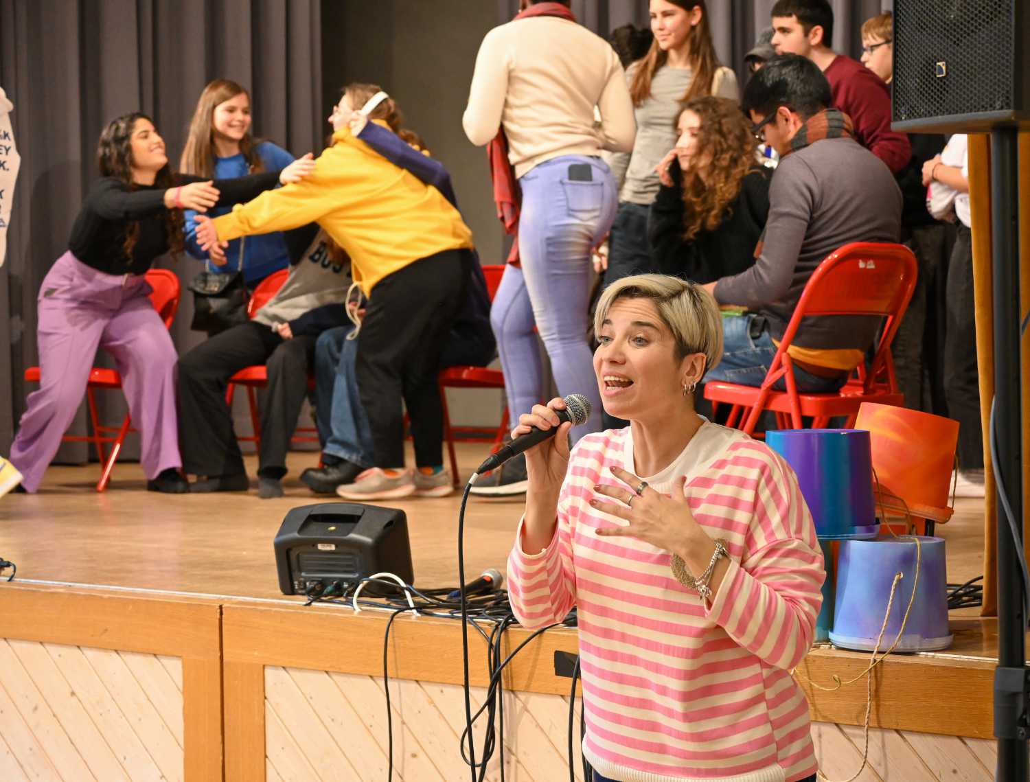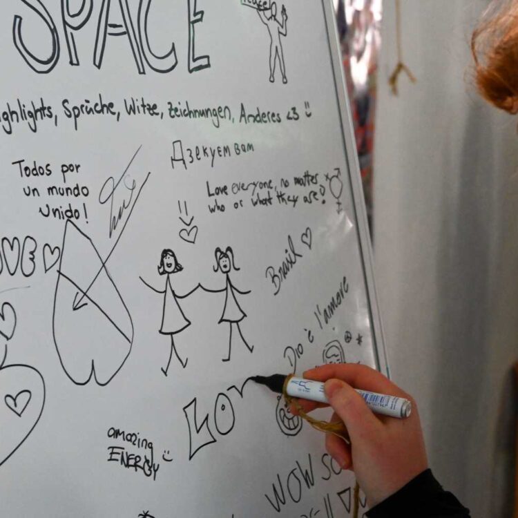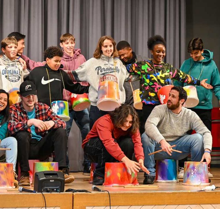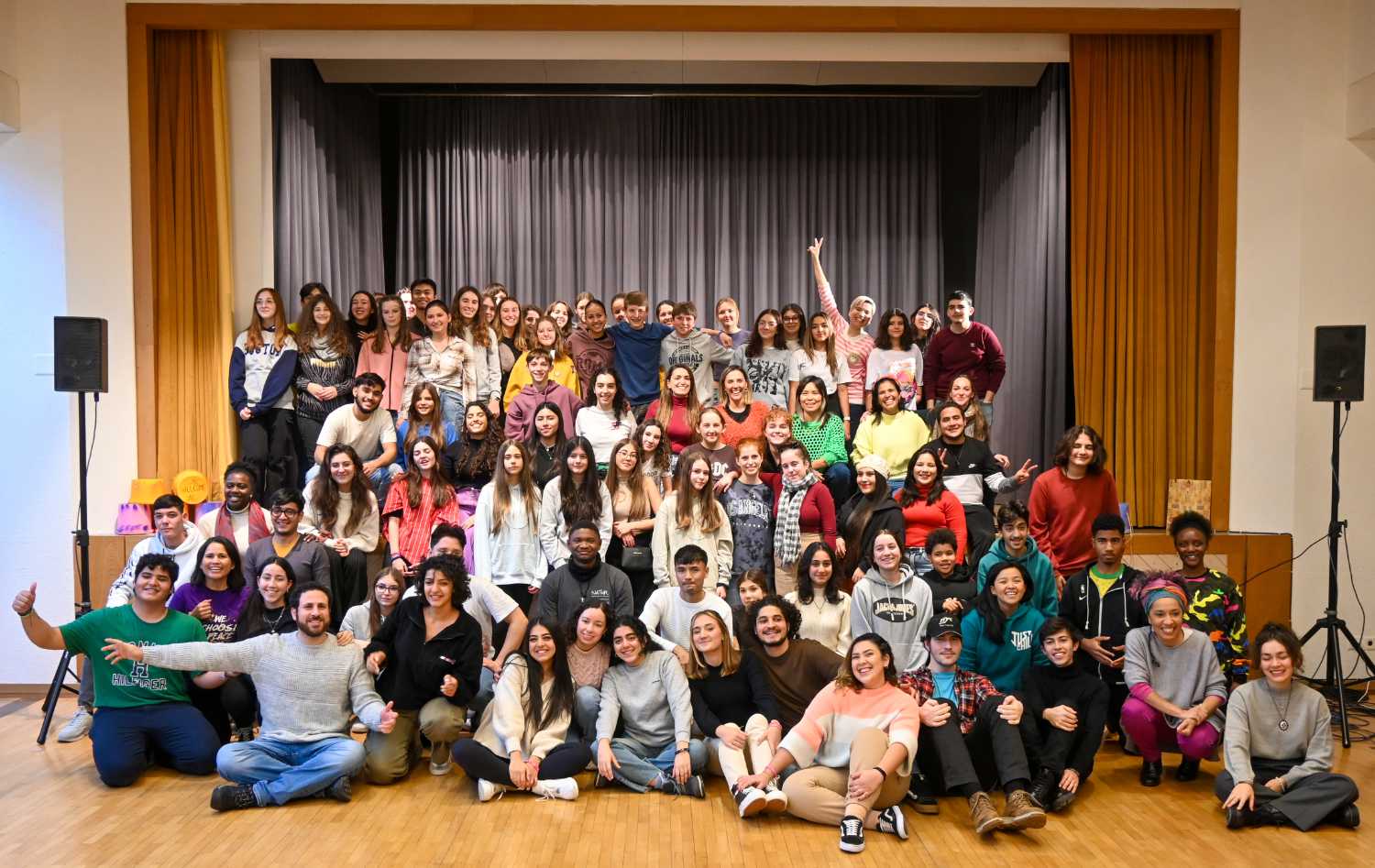 Der Beginn war mit allen im grossen Saal, die Moderatorinnen stellten sich vor und das Motto für den Samstag, „We choose peace!“ wurde vorgestellt. Danach verstreuten sich die Jugendlichen in die verschiedenen Workshops. Es wurde zusammen gesungen, getanzt, Theater gespielt und Perkussion gemacht. An der Performance am Sonntagnachmittag wurde einander das erprobte vorgetragen, das Publikum war begeistert von dem vielen Talent auf der Bühne. Die Mitglieder von Gen Verde holten das Beste aus den Jugendlichen heraus und man spürte die gute Atmosphäre, die die Gruppe während dem Wochenende prägte.