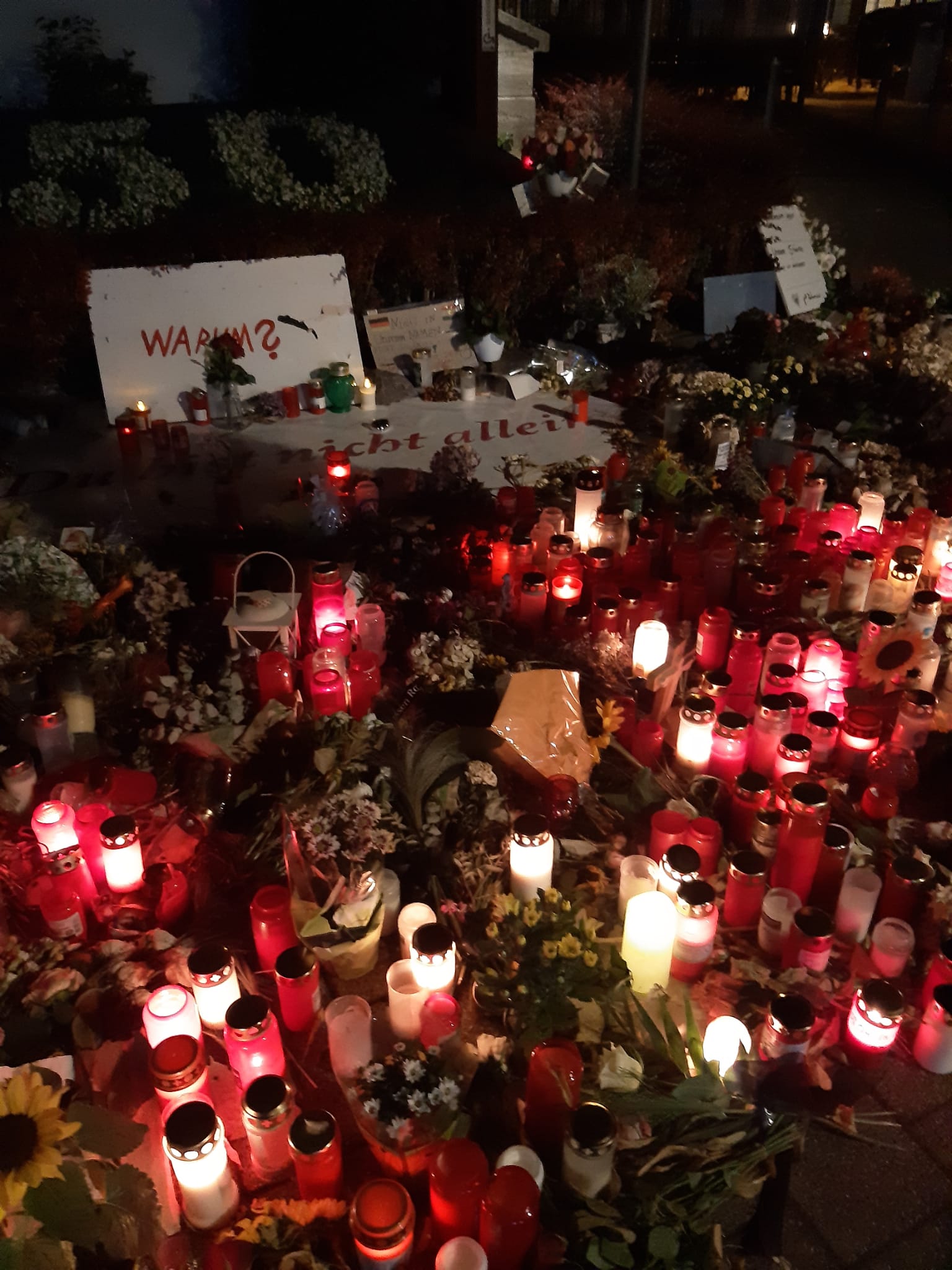 Der Anschlag war gerade erst geschehen, da mobilisierten schon rechts- und linksextreme Kräfte, um ihre Hassbotschaften zu verkünden. „Bei der ersten Trauerfeier stand ich mit meinen muslimischen Freundinnen zusammen, gemeinsam in Trauer und Sorge. Wie absurd, dass wir „bestraft werden“, weil der Westen angeblich gegen Palästinenser ist.“ So erzählt Ursula Dörpinghaus, die seit Jahren in der Stadt politisch aktiv ist, für Integration, Respekt und Verständigung wirbt, wo immer sie kann. „Wir versuchen, mit möglichst vielen Menschen in Kontakt zu sein, ihnen nahe zu sein, gemeinsam zu trauern.“